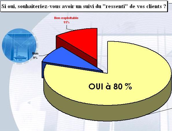 Vous êtes en effet 80 % à vouloir savoir comment vous êtes perçu par vos clients, et aussi, du "ressenti" client sur votre niveau de prestations.